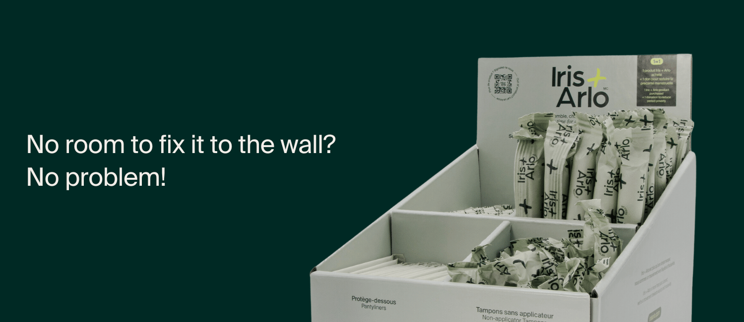 Distributeur en carton simple et pratique qui permet d'avoir à disposition plusieurs produits menstruels!