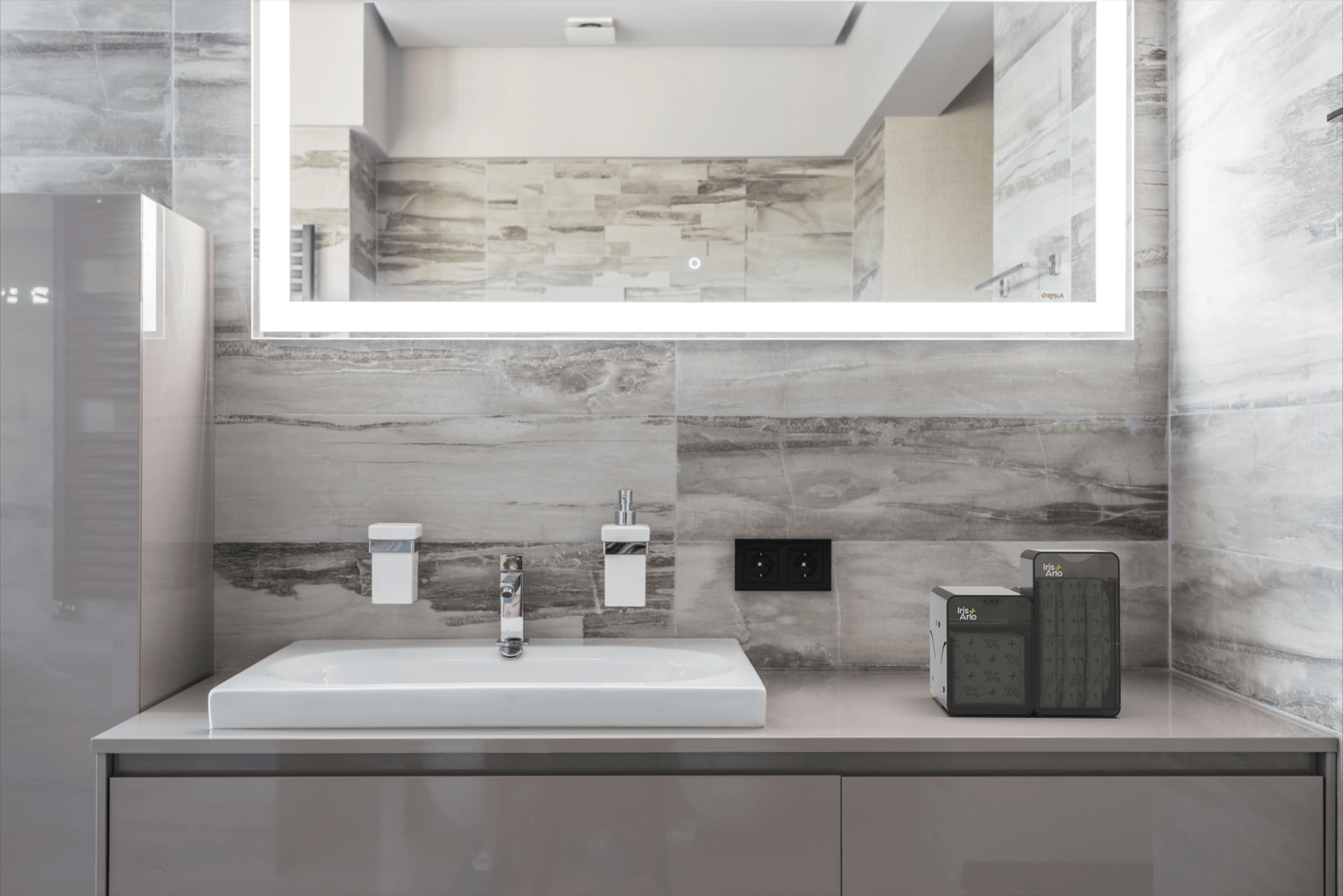 On nous a conseillé de prendre ce distributeur pour chacune de nos salles de bain: dans certaines, nous l'avons accroché au mur près du lavabo et dans d'autres, nous l'avons laissé sur le comptoir. Très versatile, peut contenir plusieurs de produits à la fois (nous avons choisi d'y mettre des tampons avec applicateur, serviettes et protège-dessous) et c'est imperméable donc les produits restent intacts.